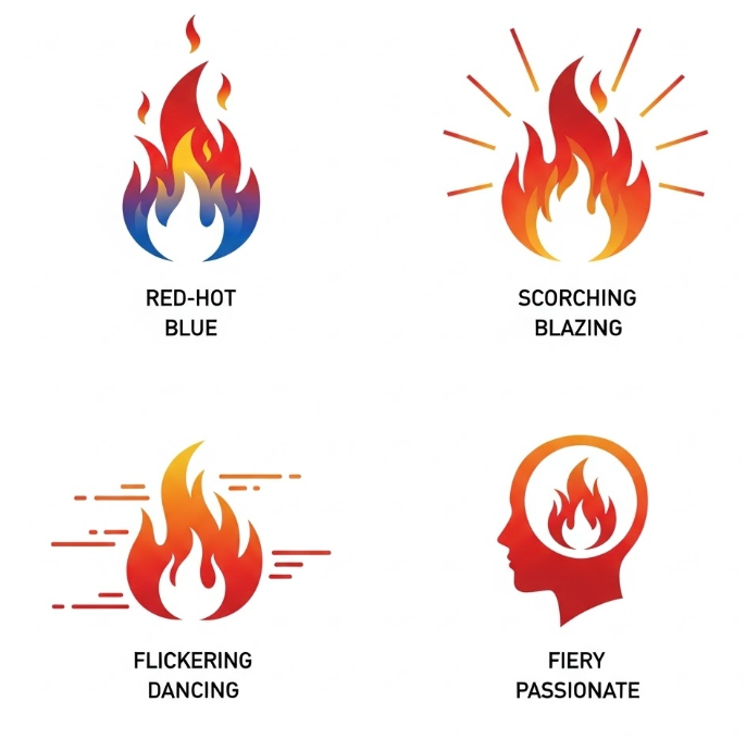Adjectives for fire can be categorized based on the aspect of fire they describe. Here are some key categories: