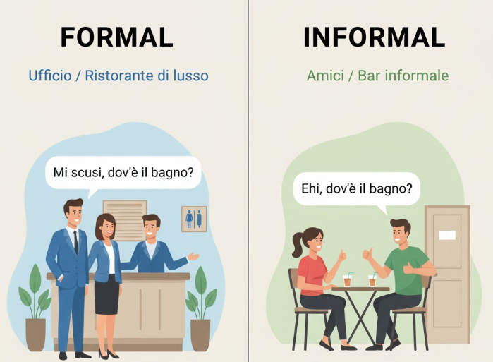 When asking for the bathroom in Italian, it’s important to consider the context and your relationship with the person you’re asking. Here are some usage rules and considerations: