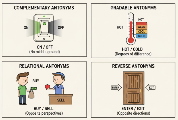Antonyms are not all created equal. They come in different types, each with its own specific characteristics.
