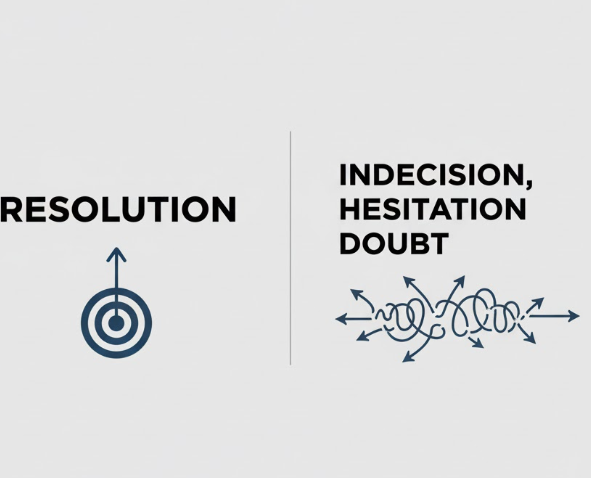 When “resolution” means a firm decision, its antonyms relate to indecision. The following table provides examples of words and phrases that convey a lack of decisiveness.